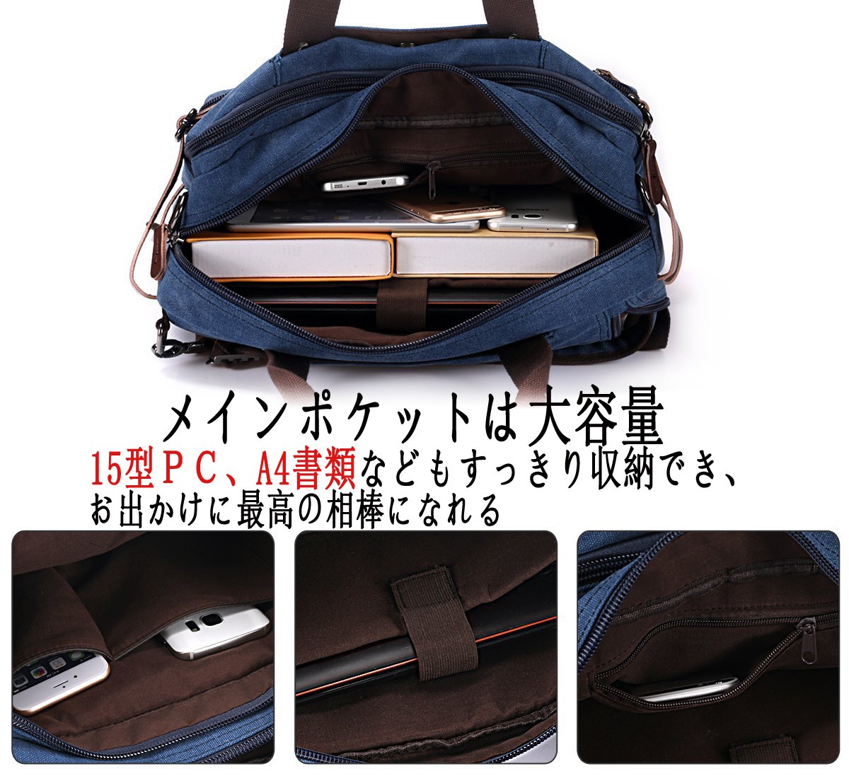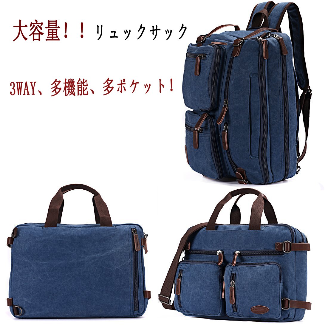 Exterior material: High density / thick canvas of original characteristics and imported cowhide are adopted, and durability sufficiently increases in the case of travel and everyday life.