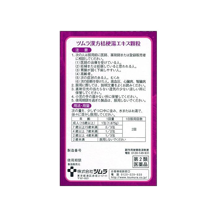 원본상품명: 【第2類品】ツムラ漢方桔梗湯エキス顆粒 8包