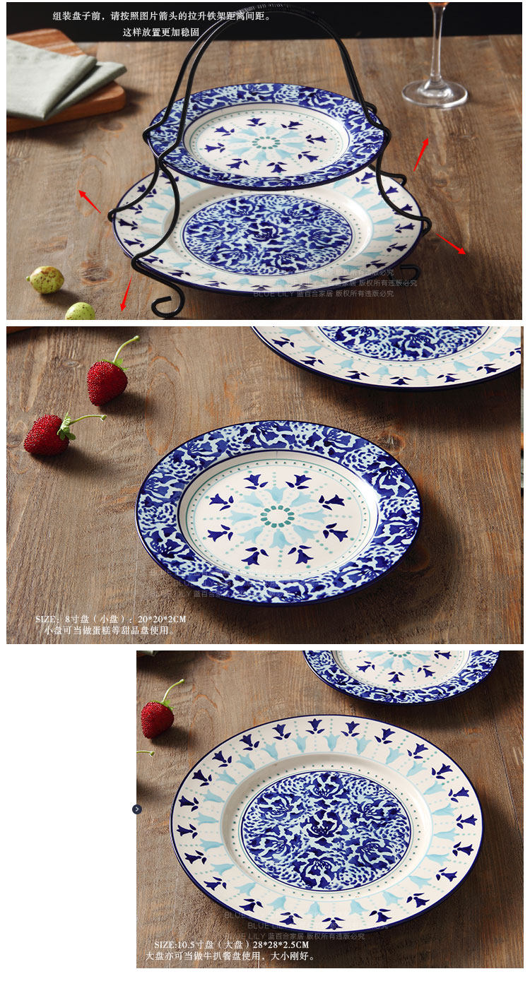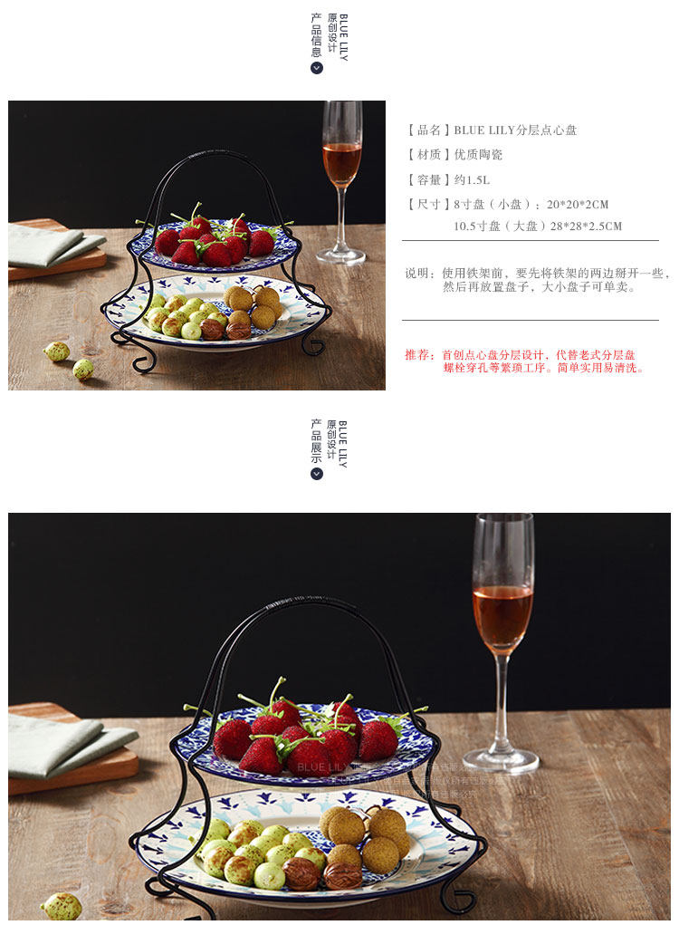 【蓝百合新设计】陶瓷双层水果盘 浮雕蛋糕盘 下午茶点心甜品果盘