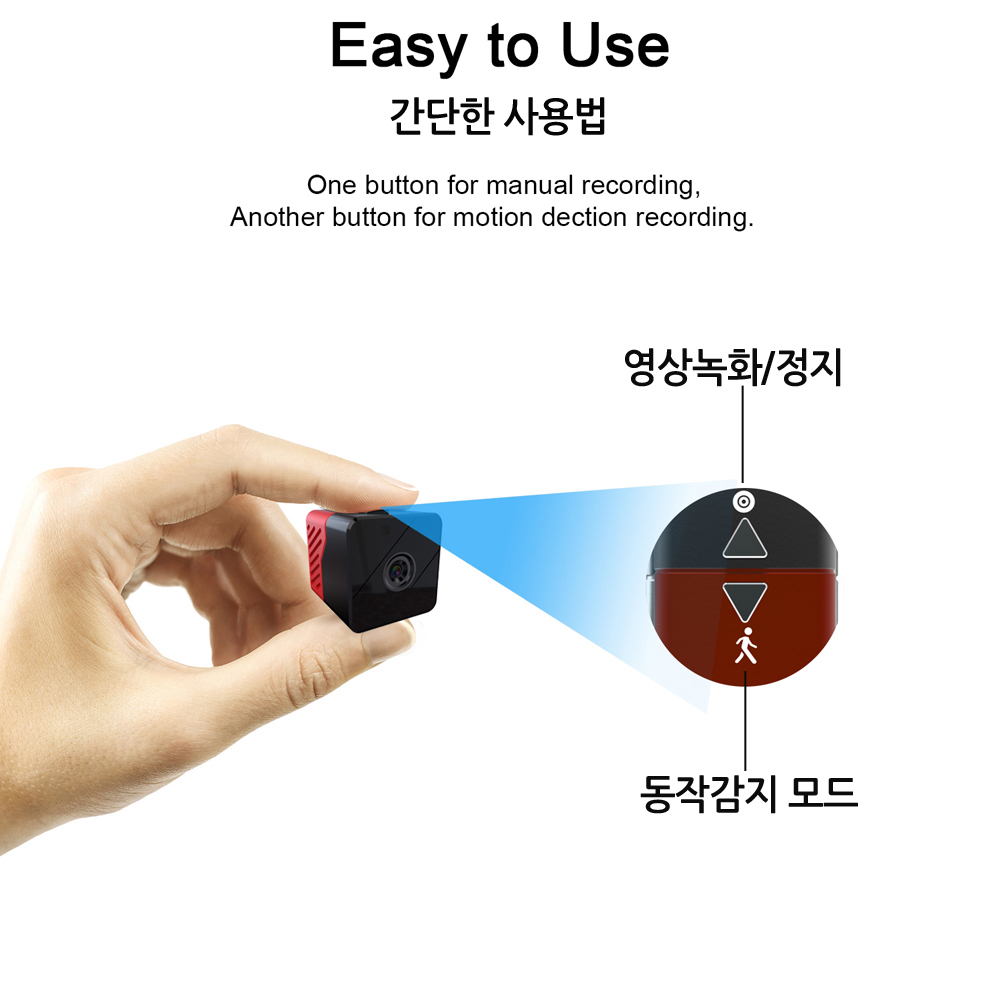 직관적인 2개의 버튼으로 녹화기능과 동작감지 기능을 사용할수있습니다.