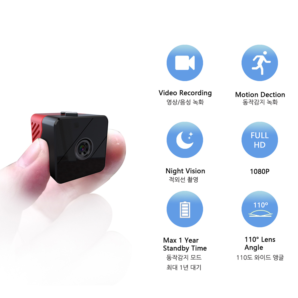 1000mAh 용량의 내장 배테리로 동작 감지 모드 작동시 최대 1년 대기할수 있습니다.