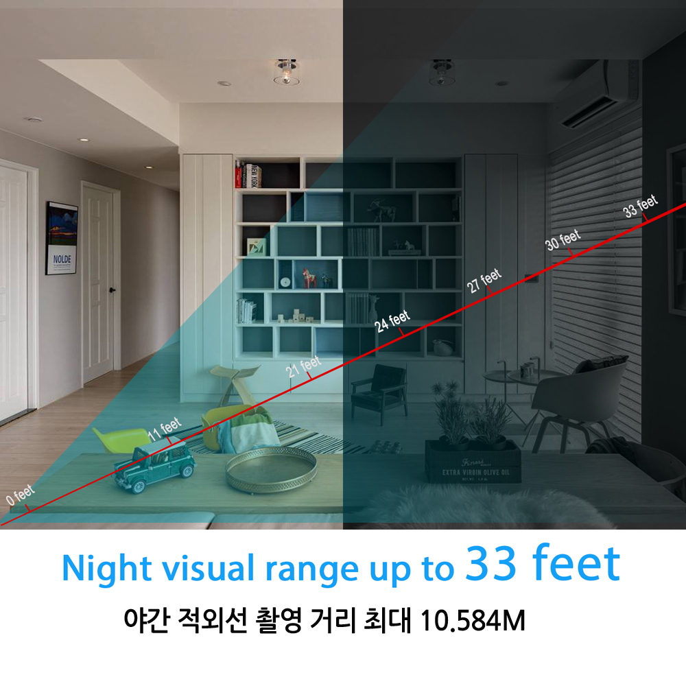 적외선모드와 동작감지 모드의 사용거리는 5/10m로 사무실이나 집안거실을 충분히 커버합니다.
