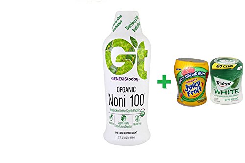 -. Title : Genesis Today, Organic Noni 100, 32 fl oz (946 ml) + Fruity Chews Gum Watermelon 1/60 Count + Trident Go Cup Spearmint 1/60 Count (BUNDLE)