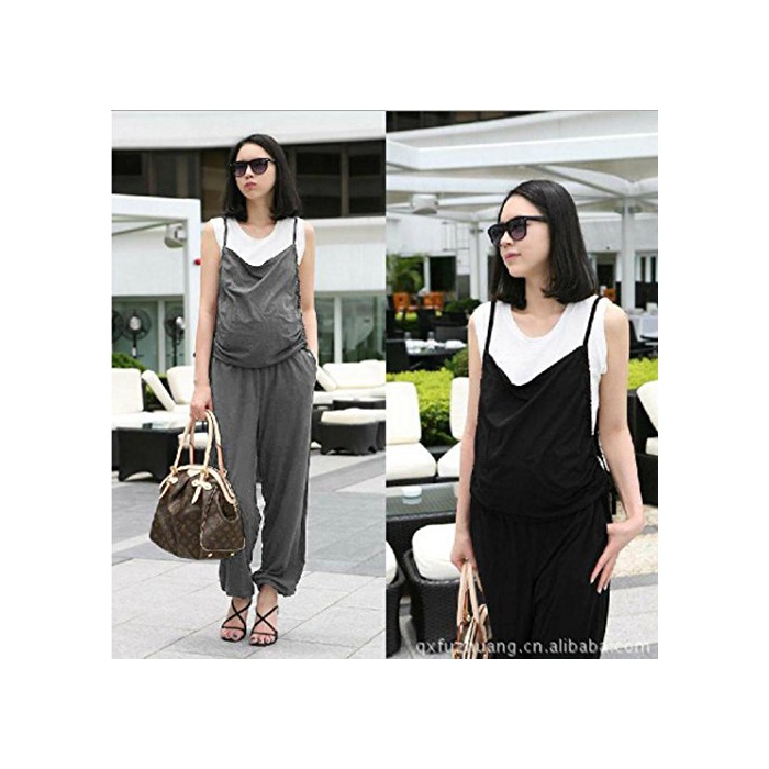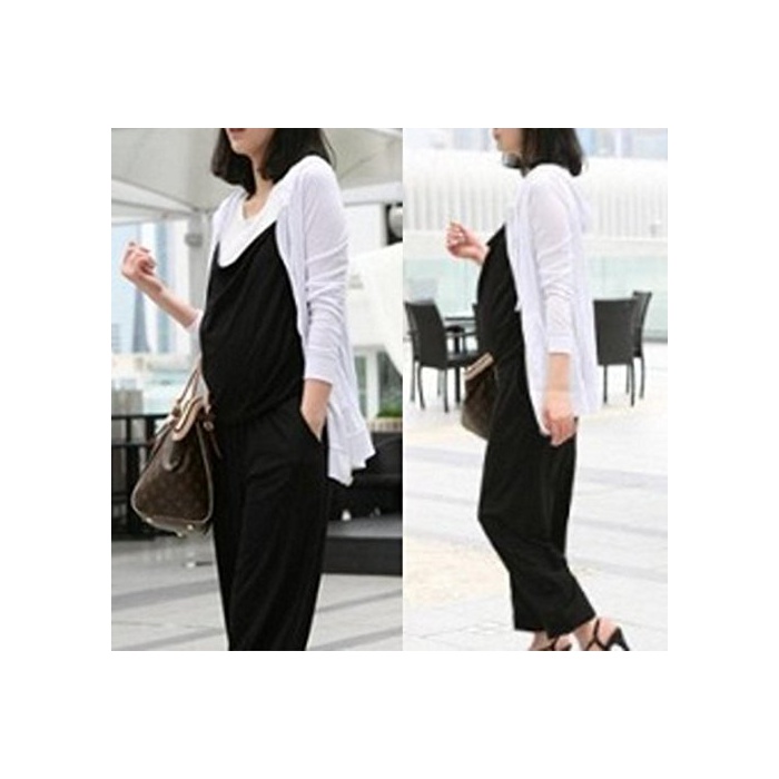 Ange 멋쟁이 마타니티 all in one 뽀빠이 바지 레이디스 임산부 마마 캐주얼 maternity 옷 패션 overalls 프리 사이즈 귀여운 (프리,블랙)