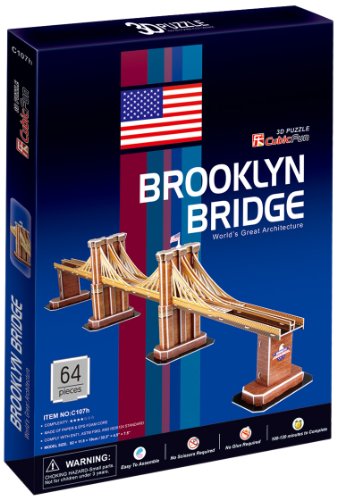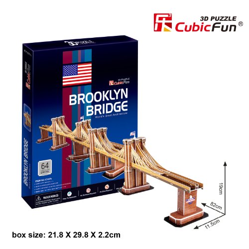 -. Author : Varios -. Binding : Toy -. Brand : CubicFun -. EAN : 6944588201074 -. Feature : Brooklyn Bridge New York 3D Puzzle - 64 pcs. / World's Great Architectural 3D Puzzles / Made of Paper and Polystyrene Foam Board. / Nice Decor, Gift and Souvenir for Kids, Children / 82cm x 11.5cm x 19cm / 32.3" x 4.5" x 7.5" -. Genre : 3d -. IsAdultProduct : 0 -. Label : Daiko -. Manufacturer : Daiko -. Model : C107h -. MPN : C107h -. PackageQuantity : 1 -. PartNumber : C107h -. ProductGroup : Toy -. ProductTypeName : TOYS_AND_GAMES -. PublicationDate : 2013 -. Publisher : Daiko -. Studio : Daiko -. Title : Brooklyn Bridge New York Worlds Great Architecture Series 3D Puzzle NYC Souvenir for Kids Children - 64 pcs