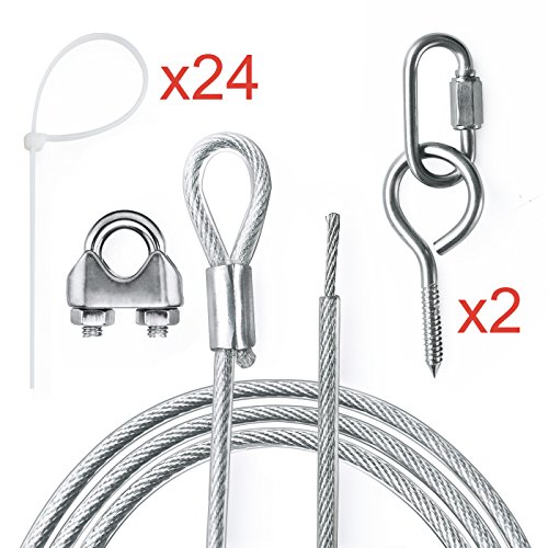 SUNTHIN 60ft Outdoor String Light Suspension Hanging Kit,Outdoor Light Guide Wire,Galvanized Steel Cable, Zip Ties, Turn Buckles, Wire Crimp, Screw Hooks Include