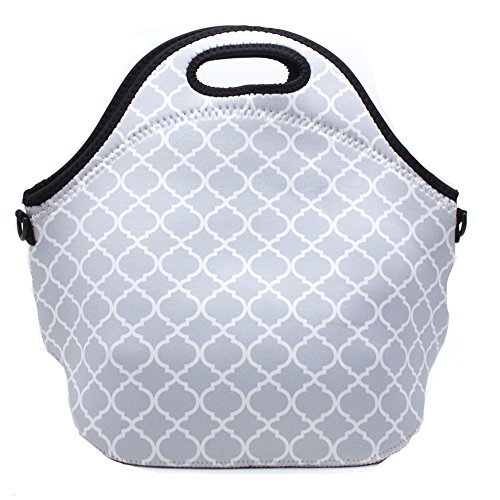 Insulated Neoprene Lunch Bag Waterproof Outdoor Picnic Travel bag Handbag Pouch for Women Men Girls School Work (GREY)