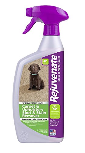 -. Binding : Kitchen -. Brand : Rejuvenate -. EAN : 0678408550375 -. Feature : Nontoxic formula is safe for carpet, fabrics and upholstery and made in the USA / Instantly and permanently removes stains by dissolving fats, proteins, starches and pigmentation without heavy scrubbing / Bio-enzymatic action keeps working on stains after application / Simply spray on then agitate with a clean microfiber cloth or sponge / Low VOC (Volatile organic compounds) formula is odor and fume free -. IsAutographed : 0 -. Label : For Life Products -. Manufacturer : For Life Products -. Model : RJ24CU -. MPN : RJ24CU -. PackageQuantity : 1000 -. PartNumber : RJ24CU -. ProductGroup : Home -. ProductTypeName : HOME -. Publisher : For Life Products -. Size : 24 Ounces -. Studio : For Life Products -. Title : Rejuvenate Bio-Enzymatic Carpet & Upholstery Spot & Stain Remover Spray and Walk Away 24 ounce -. UPC : 678408550375