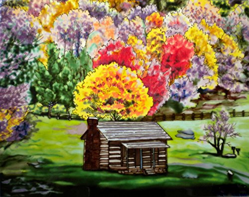 Fall foliage ceramic art tile 11 x 14 inches with back and hooks