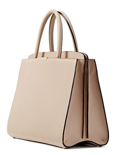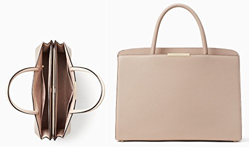 - 10.6" h x 14.4"w x 6.1"d drop length: 4" handheld Soft pebbled leather with matching trim capital kate jacquard lining. gold plated hardware style # wkru5186 magnetic snap closure interior zipper and dual slide pockets kate spade new york signature on hardware dust bag not included imported