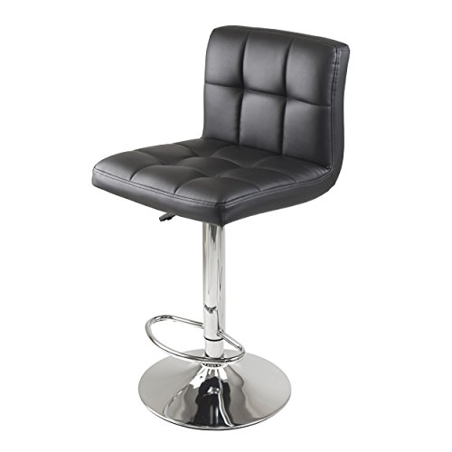 -. Title : Winsome Stockholm Air Lift Stool, Swivel Square Grid Faux Leather Seat, Black