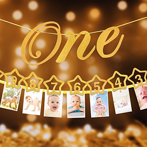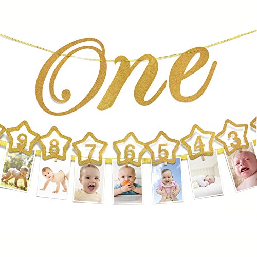 This gorgeous glitter-filled milestone monthly banner will make your baby's first birthday party a very special one!