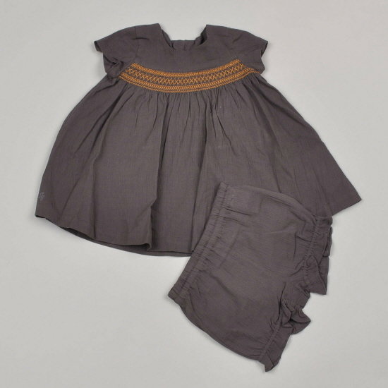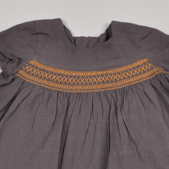 상품설명-가슴와 칼라 스모크가 포인트인 반팔원피스입니다.