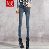1.7折第二次微笑牛仔裤女小脚九分裤春夏中高腰铅笔显瘦修身女裤