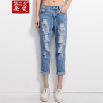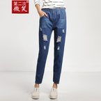 1.0折第二次微笑破洞牛仔裤女宽松哈伦裤九分裤小脚裤乞丐裤春夏新款