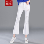 1.7折第二次微笑中高腰牛仔喇叭裤女裤牛仔夏女微喇牛仔裤长裤女春