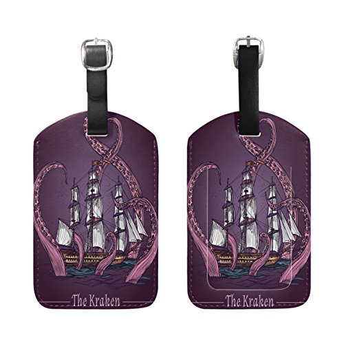 (ALAZA)/Accessories/Luggage, Bags Travel/DIRECT FROM USA/ALAZA Sail Ship Octopus Purple Luggage Tags Travel ID Bag Tag for Suitcase 1 Piece
