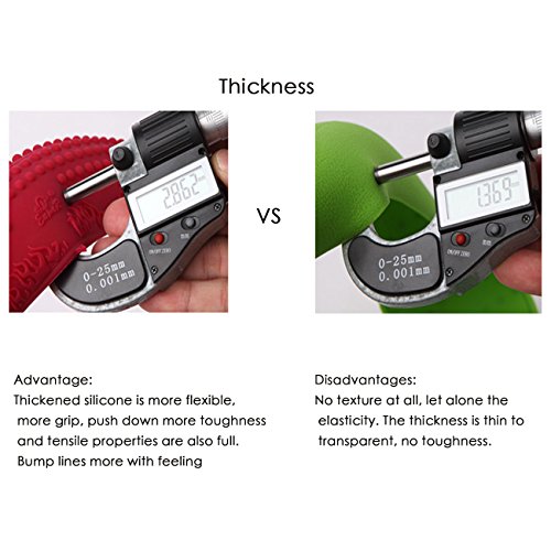 Thickened silicone is more flexible, more grip, push down more toughness and tensile properties are also full. Bump lines more with feeling