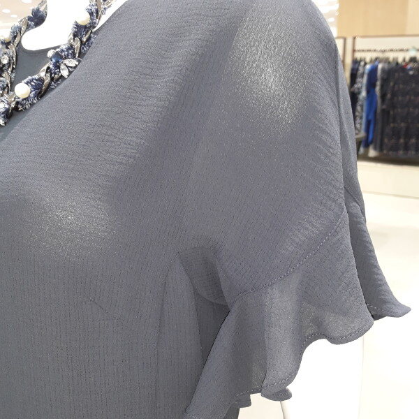 쉬폰스타일의 원피스로 러플소매가 포인트입니다 여성스러우면서 사랑스러운스타일을 연출하실수 있습니다