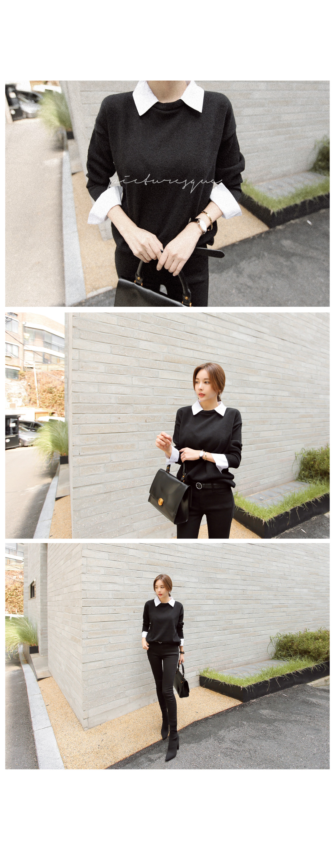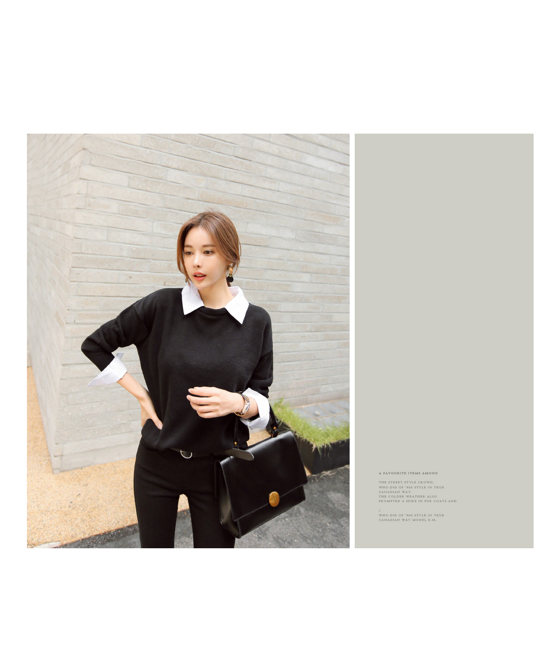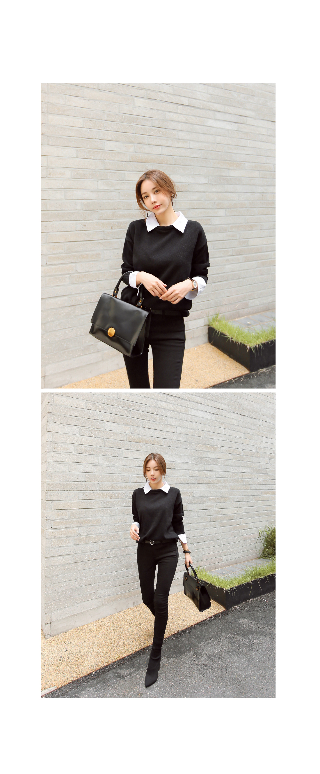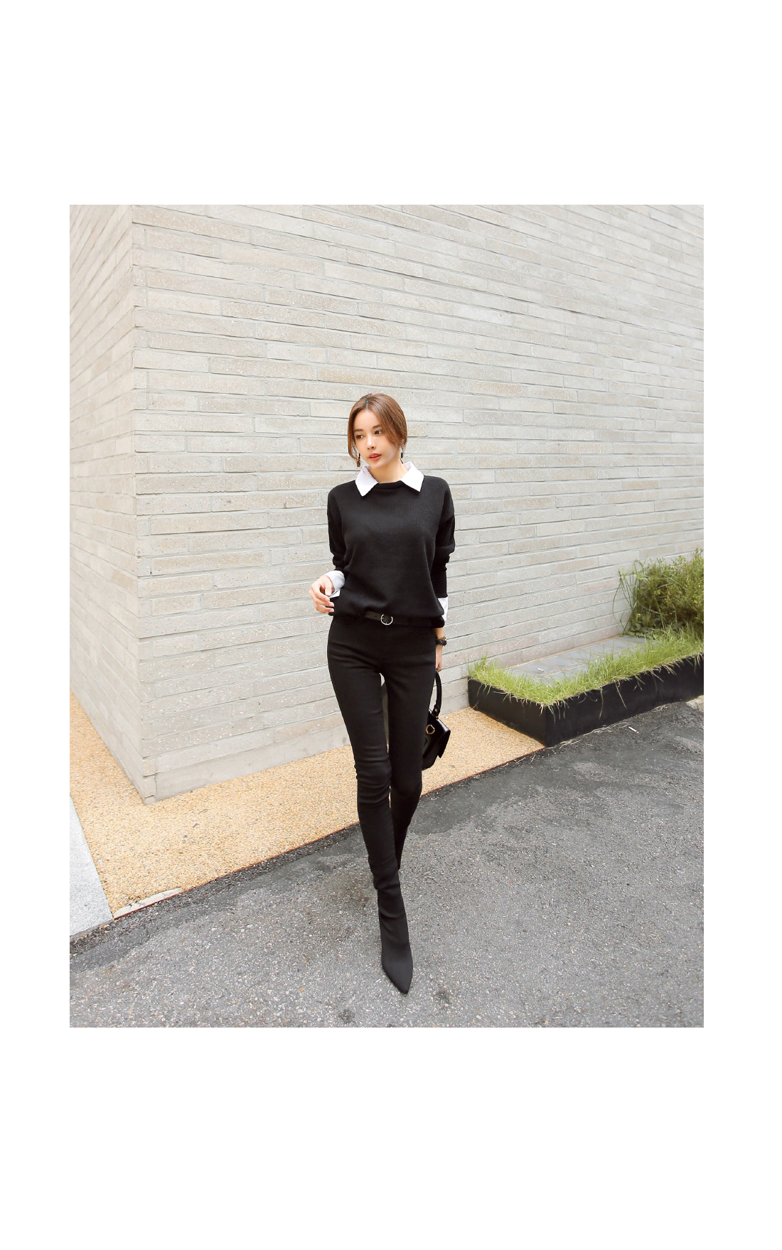 깔끔한 카라가 더해진 라운드 넥 디자인과 적당히 힘있는 소재감으로 단품으로도, 자켓 이너로도 활용도 높구요.