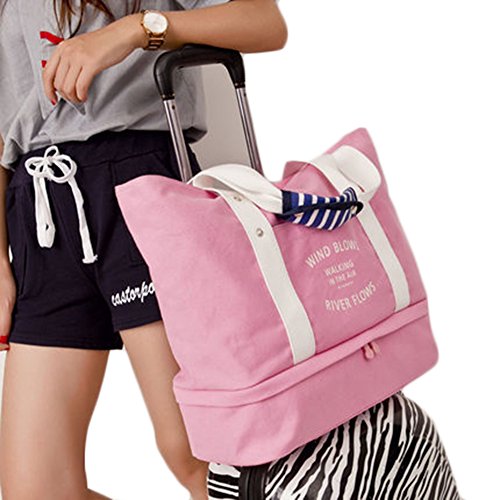 Product Description Item Description : Made of durable canvas, size: 54.5cm (L) x16cm (W) x37cm (H) Composed of 3 compartments: 1 large main bag 54.5cm (L) x16cm (W) x37cm (H),1 internal small bag 25cm (L) x17cm (w), 1 bottom zippered bag 39cm (L) x16cm (W) Can be attached the travel suit case, set your hand free, convenient for travel. The mesh interlayer helps you organizer items perfectly Perfect for weekends or overnights, can be used as carry on Multicolor to choose from, the bright color will give you a pleasure feeling Fashionable design, express your personality while traveling Package includes: 1x Canvas Duffel Bag 0