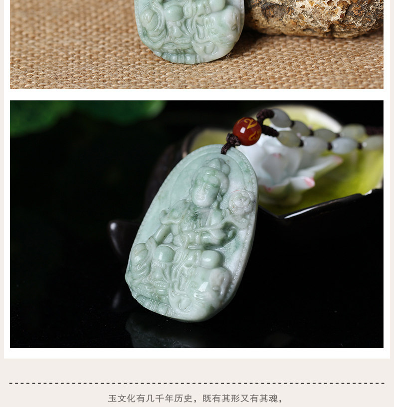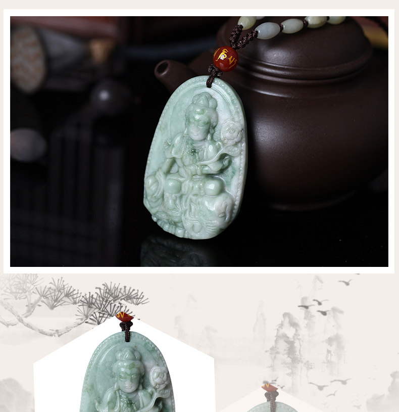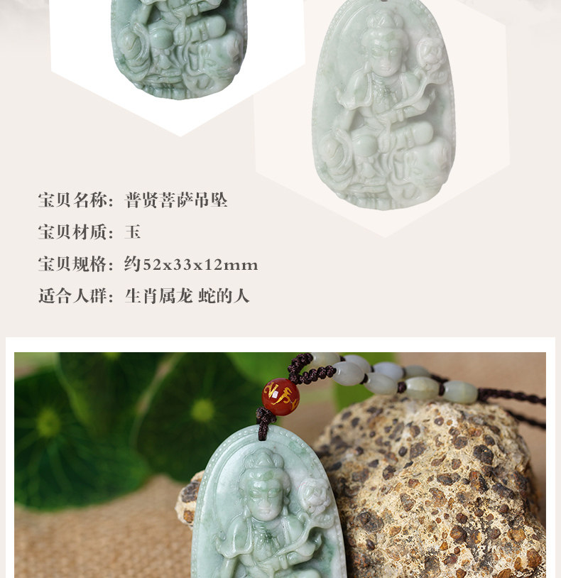 天然青花玉普贤菩萨十二生肖属龙蛇本命佛守护神吊坠