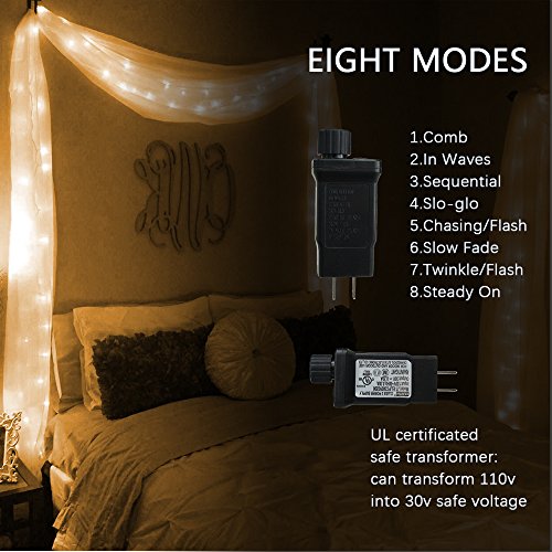 - UL Certificated Output and wire: 30V Voltage Safe Curtain Lights with UL certified, leads to 29V safe output by UL plug-in transformer.