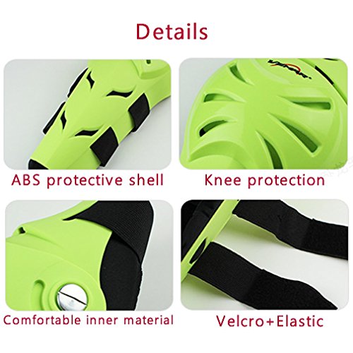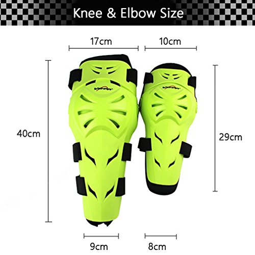 -. Feature : Include:1 Pair of Knee Shin Pads (2 PCS) & 1 Pair of Elbow Pads (2 PCS) / High impact PP shells with mesh fabric & foam pads allows for a greater degree of comfort and protection for knees and shins / Adjustable elastic quick-release straps for optimum fit and easy removal. / Multiple large vents in plastic shells and foam for maximum comfort and ventilation / Suitable for protecting knees and elbows of adult motorcycle riders during daily riding or motocross racing, etc.