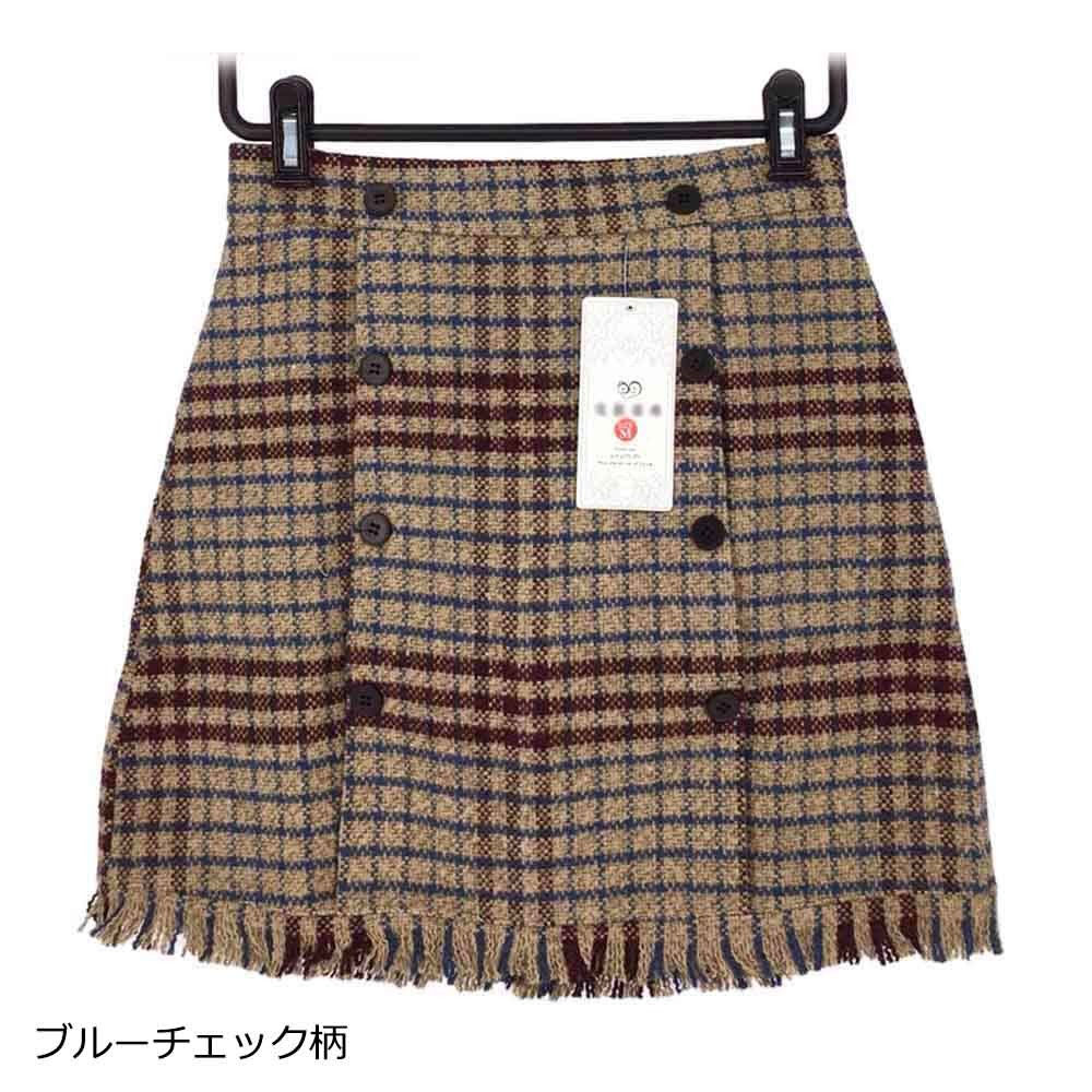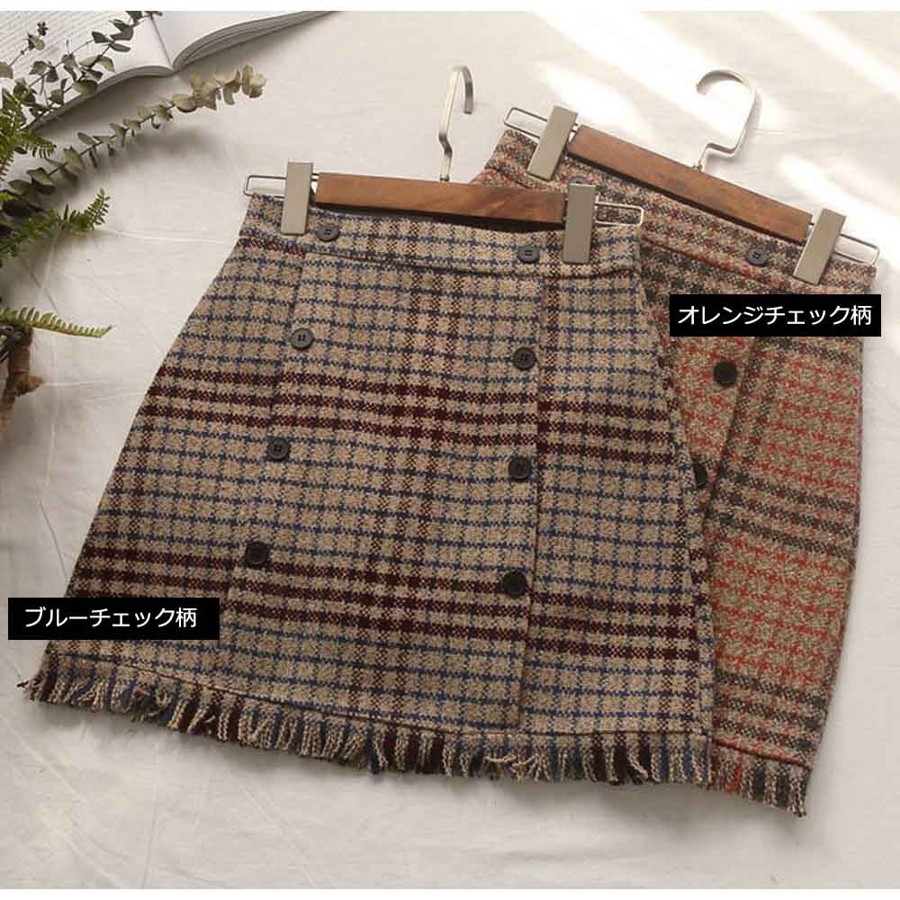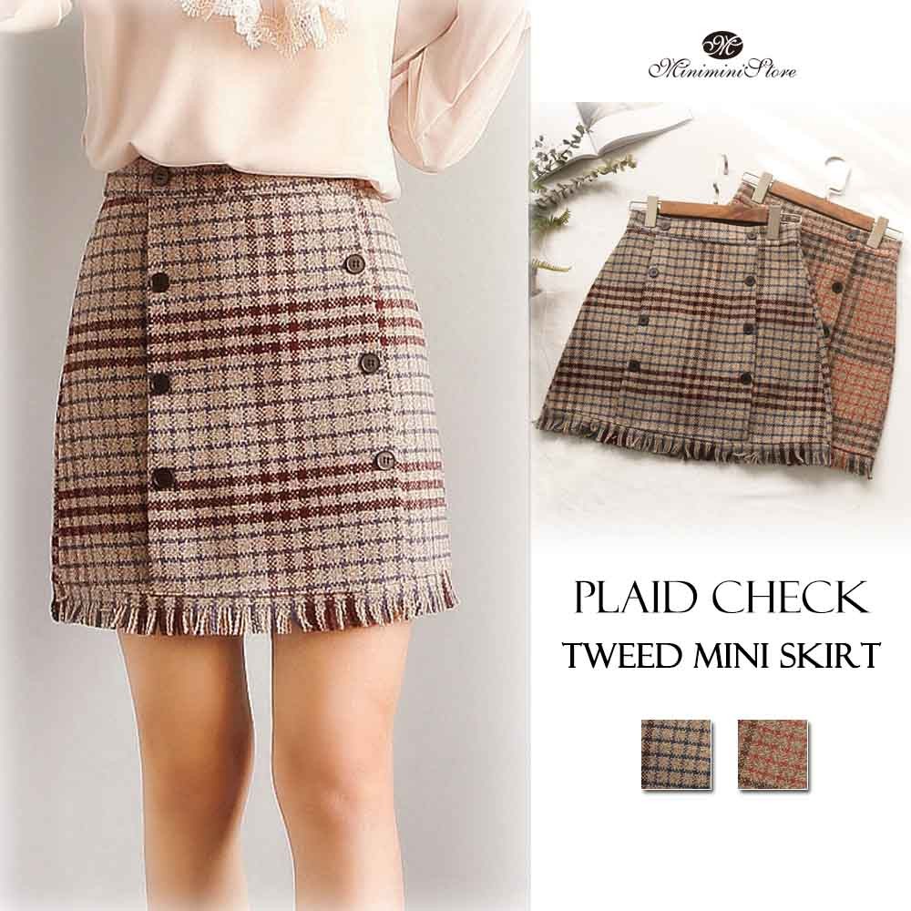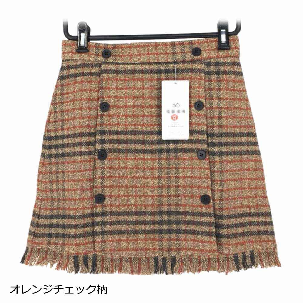 細見えが叶うしっかり表情のあるグレンチェック柄のツイード生地台形ミニスカート