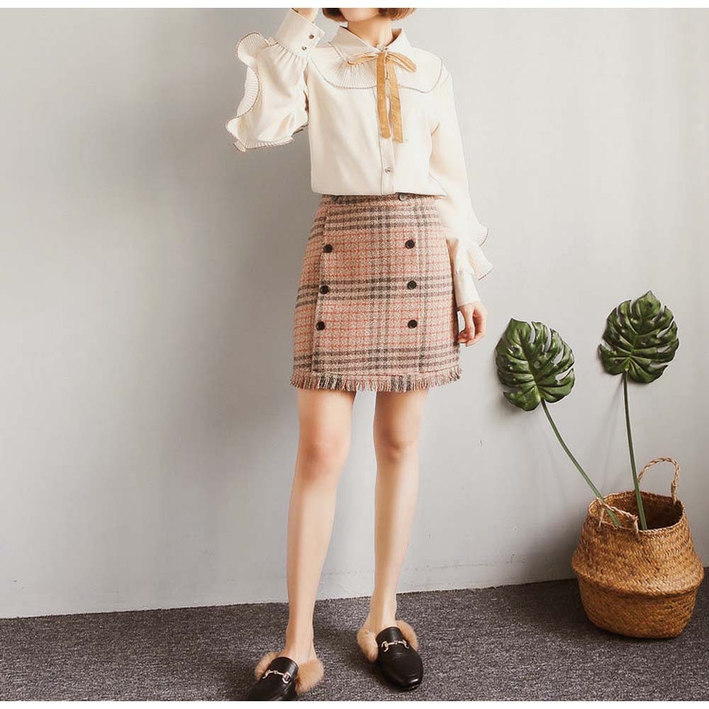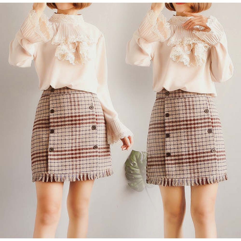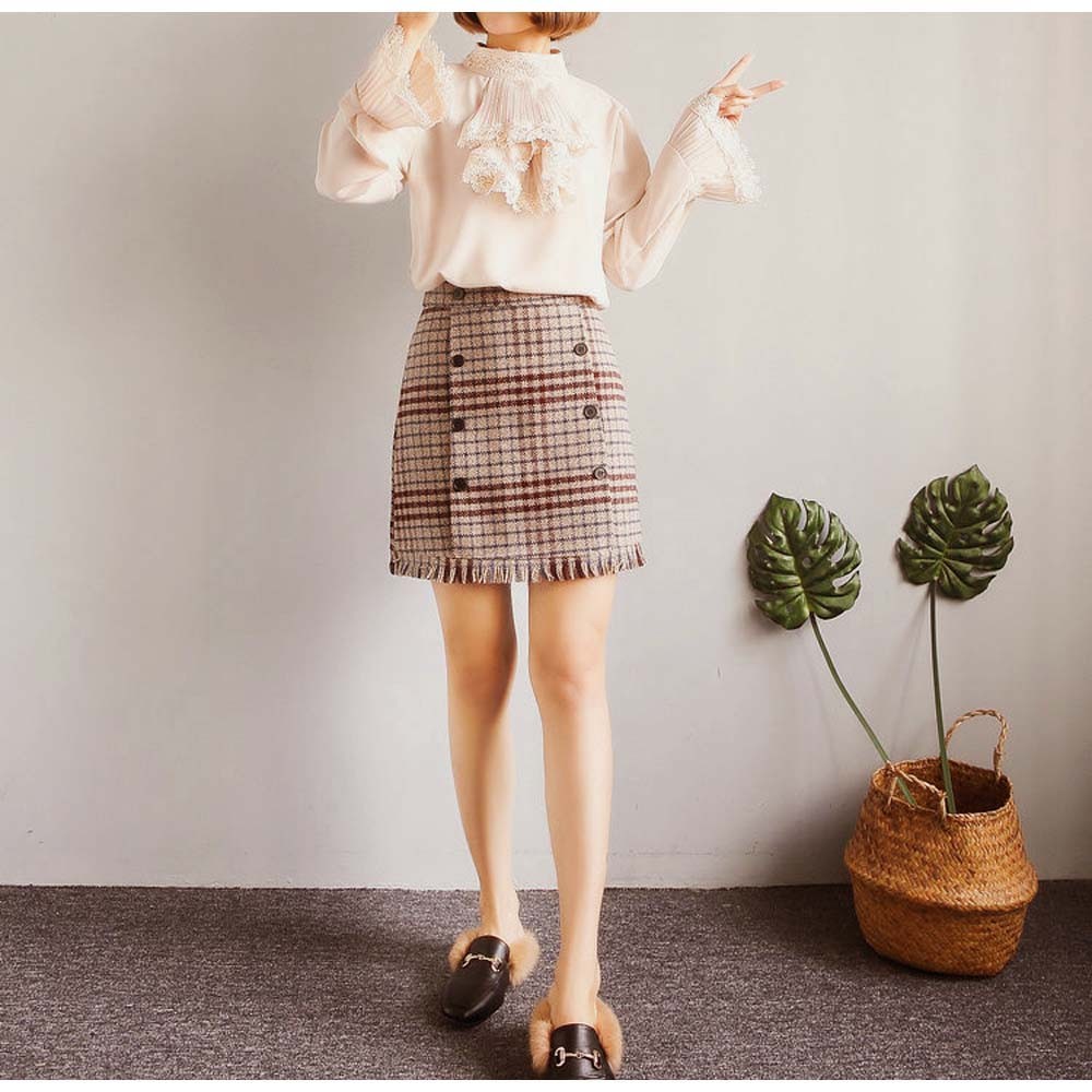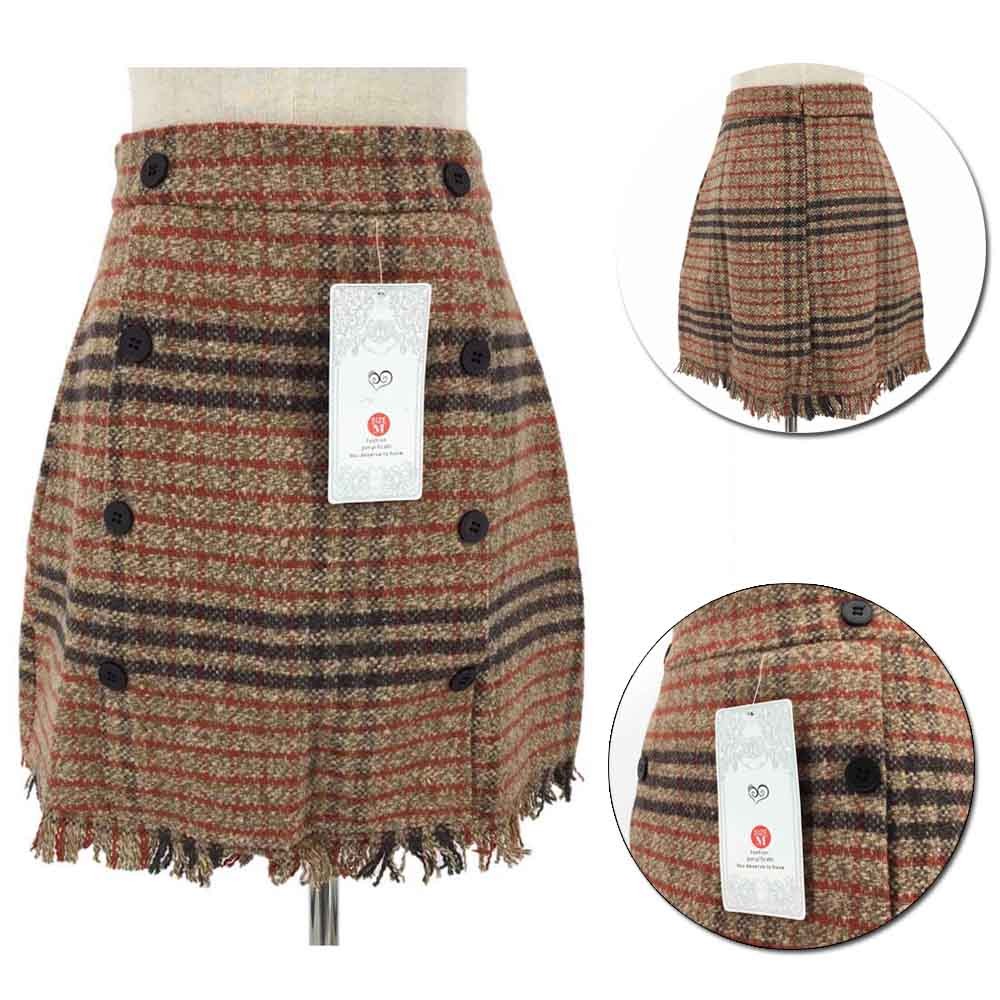 細見えが叶うしっかり表情のあるグレンチェック柄のツイード生地台形ミニスカート
