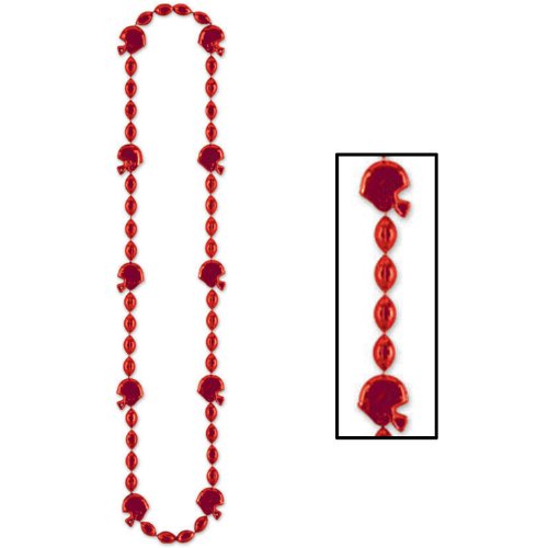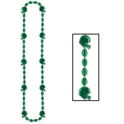 Beistle 50598-G Football Beads. The green plastic football necklace is a combination of football and helmet beads. The necklace is 36 Inch long. Wear these to football games or hand out at football themed parties. Everyone will love to wear them!.Feature