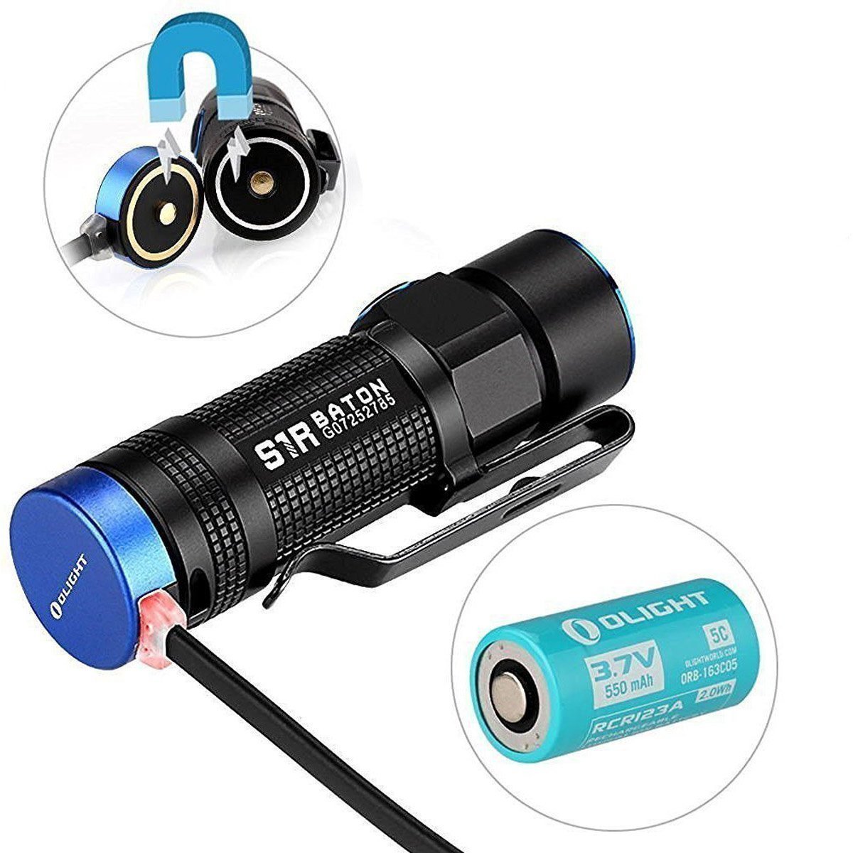1 x 550 mAh RCR 123 A rechargeable battery