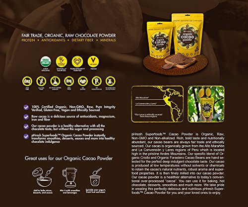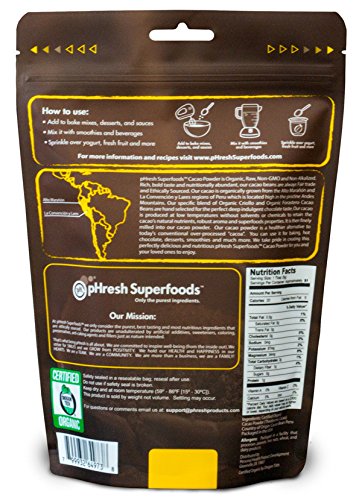 • pHresh Superfoods Raw Organic Cacao powder is a healthy alternative to traditional cocoa with all the guilt-free chocolate indulgence taste, but without the added sugar and processing