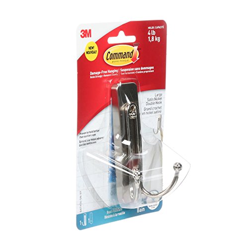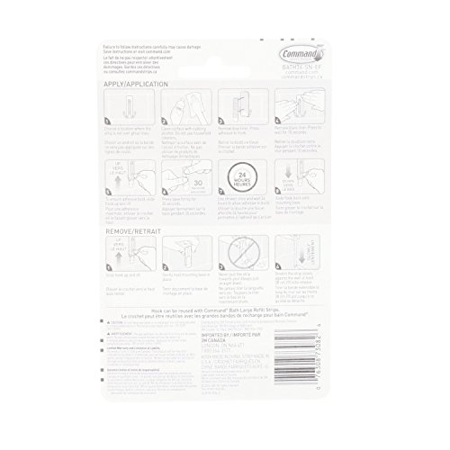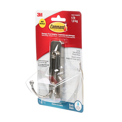 Studio : 3M Corp Publisher : 3M Corp Binding : Tools Home Improvement Product Description Command large double bath Hooks with water-resistant strips allow you to keep your bathroom organized both inside and outside of the shower. The hook stands up to hot, wet and humid environments and sticks to a variety of surfaces, including glass, mirror, tile, fiberglass, wood and painted surfaces. Tested and proven to hold better than suction cups, it is easy to apply and come off cleanly without damage. Repositioning is easy with assorted water resistant refill strips. Great for bathroom organization including guest and kids' bathrooms, renters and dorm life 0