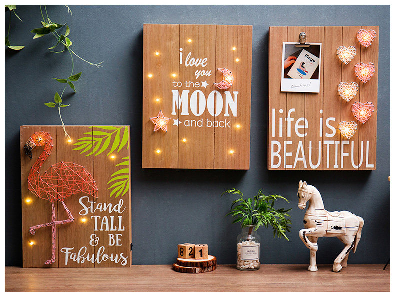 ins木板画少女房间墙上小挂饰餐厅奶茶店墙面墙壁装饰品创意挂件