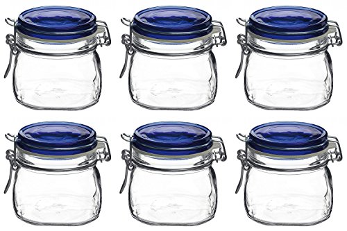 Bormioli Rocco: "Fido" 16.9 Fluid Ounces (500mL) Jar, BLUE Lid (Pack of 6) [ Italian Import ]