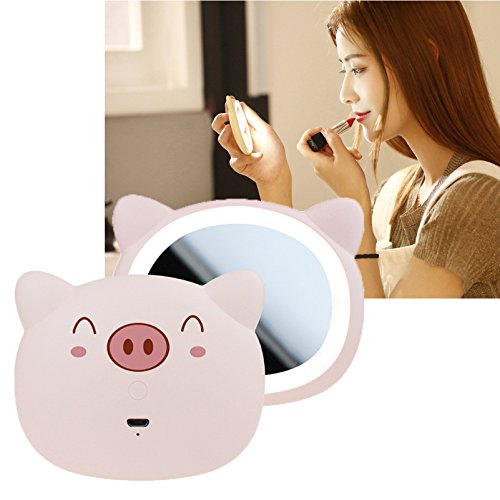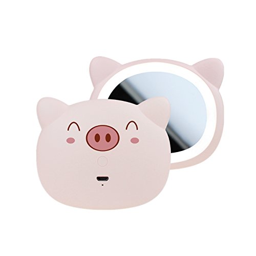 Mini LED Lighted Makeup Mirror Yellow Travel Beauty Pig Mirror - Battaa C1815 ( 2018 New Design ) Daylight LED Compact Portable Pocket Vanity Cosmetic Mirror