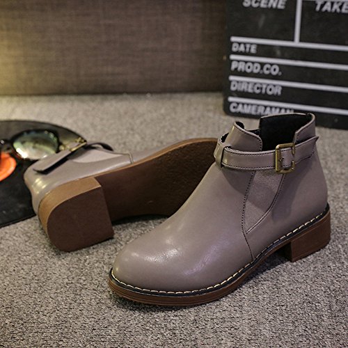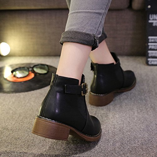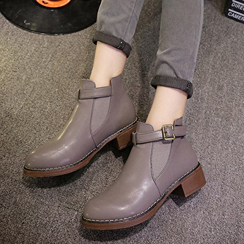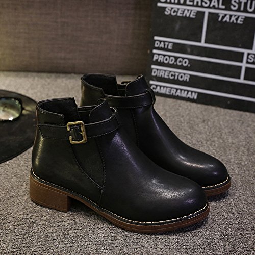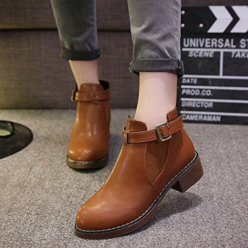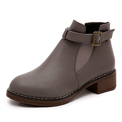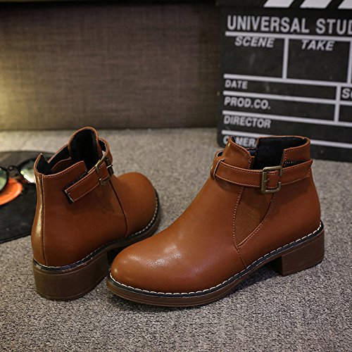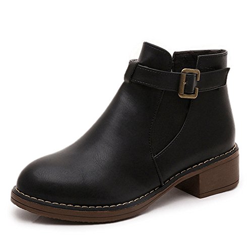 (Btrada)/Women's/Boots/DIRECT FROM USA/Btrada Womens Winter Buckle Elastic Panel Ankle Boot Thicky Heel Fur Lining Round Toe Martin Bo...