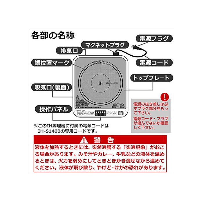 원본상품명: 山善(YAMAZEN) 1400W IH調理器 IHクッキングヒ?タ? IH-S1400
