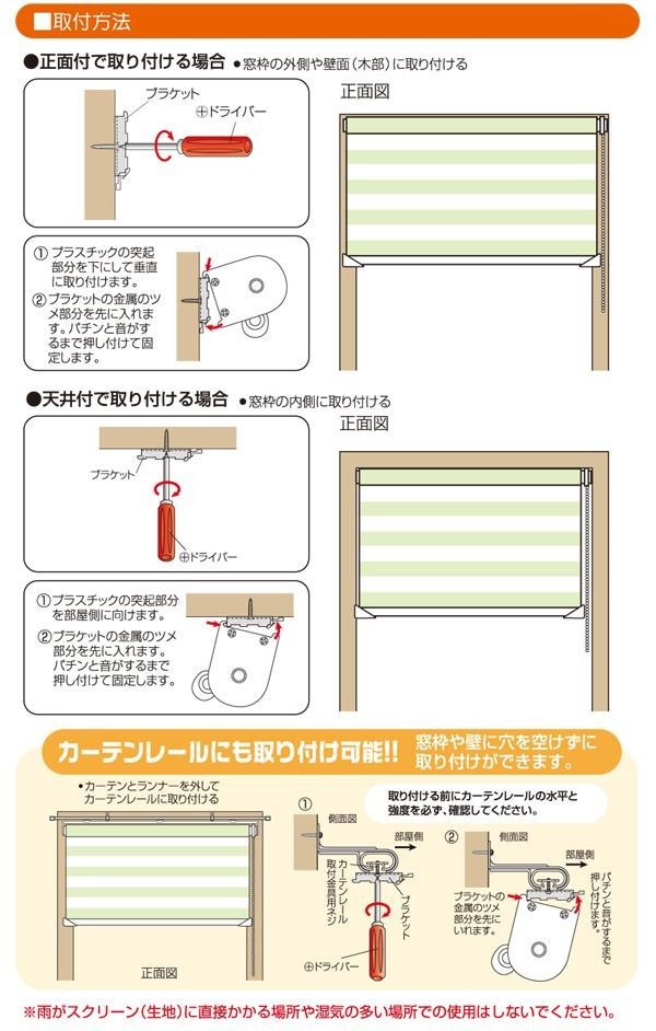前後のスクリーンの重なりで光を採り入れたり、外からの視線を遮ったり、自在にコントロールできます。窓枠や壁に穴を空けずに取り付けができます。賃貸マンションなどキズを付けたくない所に。ベーシックな色味が長く使える飽きのこないカラー展開です♪ |