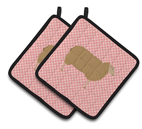 Caroline's Treasures BB7977PTHD East Friesian Sheep Pink Check Decorated Pot Holder, 7.5" x 7.5", Multicolor