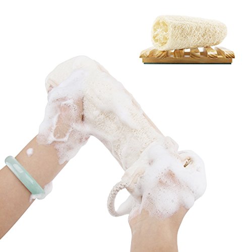 - EXFOLIATING SCRUBBING FUNCTION – Helps to rub the outermost surface of your skin, removes the infected and dead skin cells. Alleviate stress and tension, stimulate blood circulation. The loofah side is neither too rough nor too soft, your back, neck, and shoulder will be perfectly exfoliated. Flip the scrubber over to softly polish your body for a silky-smooth finish.