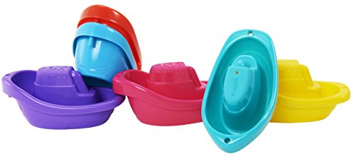 Choo-choo-choo, here comes the little boat train. All aboard this set of six boats that link together to make a train of tub time fun. Whether your little one loves to play with vehicles (trains, boats, or both), loves to link and build, or just loves to zoom things through water, these bath toys are sure to be a hit. The boats float, scoop and strain water, and are designed with goofy faces guaranteed to make your little one smile. Each pack comes with six brightly colored boats numbered 1-2-3, making them great for teaching colors, order, number recognition and counting. Linking, scooping and pouring help develop fine motor skills, too. Your little captain/conductor is in for a fleet treat.