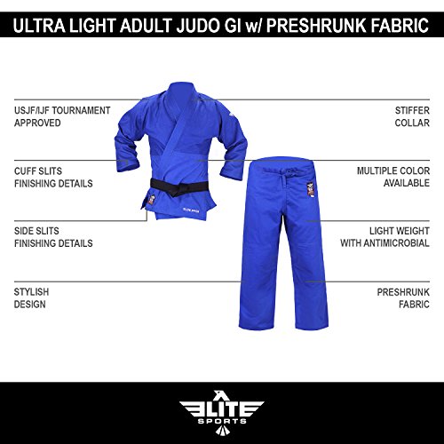 Elite Sports NEW ITEM Deluxe Adult IJF Judo Gi w/ Preshrunk Fabric & Free Belt