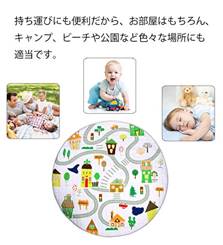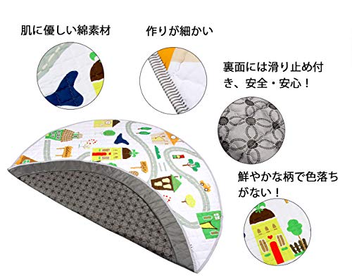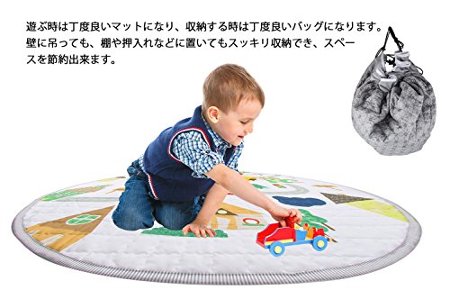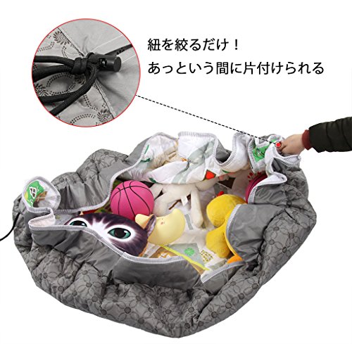 ●レゴや知育玩具等のおもちゃを紐をひっぱるだけで巾着のような収納バッグになる大変便利なプレイマットです。 | ●使用:簡単4ステップで全部お片づけ! 1.マット上のおもちゃを中央にまとめます。 2.まわりのひもを絞り込んできます。 3.ギュッと縛って口を閉じます。 4.完成! | お子さんの手が触れるものだからこそ、有害な物質が含まれておりません。 |
