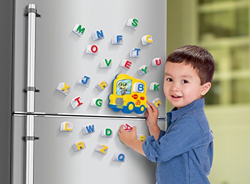 Celebrate A to Z with fun learning songs, including the "Alphabet Song" and "Wheels on the Bus." Kids can learn the alphabet by placing individual magnetic letter tiles on the bus window.