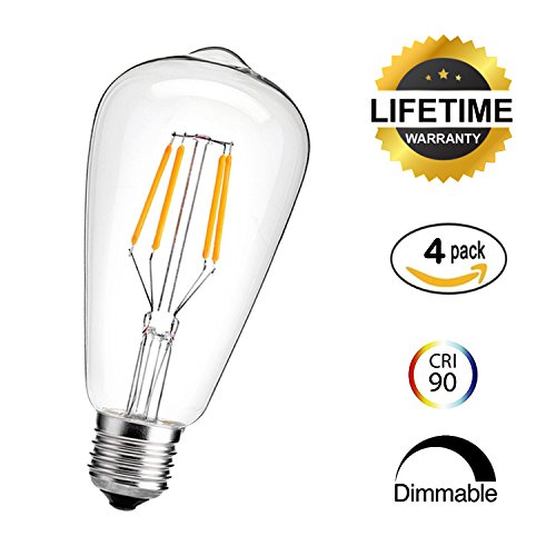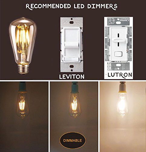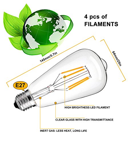 - Ultra Bright Performance & Dimmer Compatibility: Dimmable ST64 Led bulbs with 4 pcs filaments, 40W incandescent Equivalent, E27 Base, With Overload Protection, Short Circuit Protection and Over Temperature Protection. The Best Recommended Dimmer Brand is Lutron.