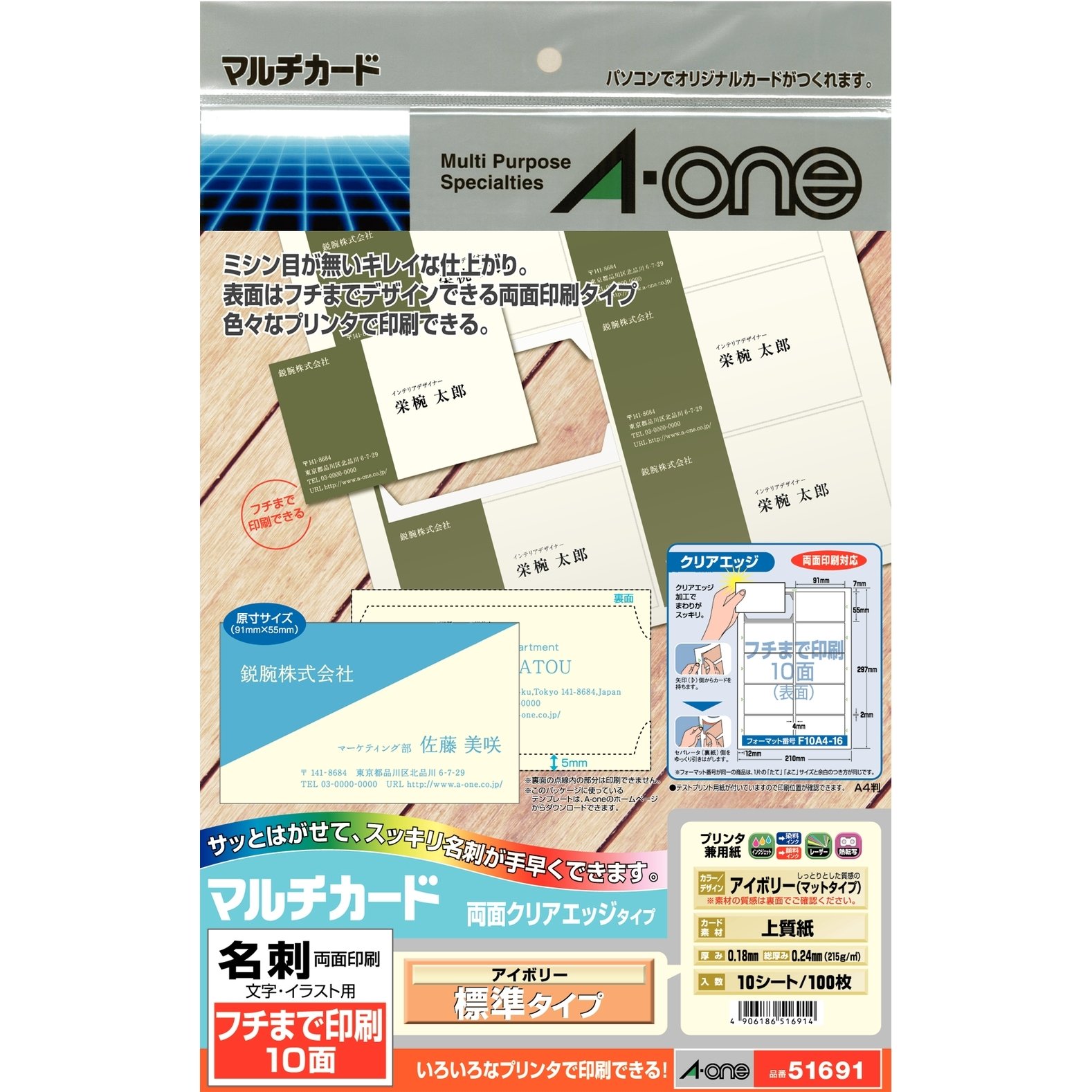 A-One multi-card business card both sides clear edge ivory border to print 100 sheets of 51 691