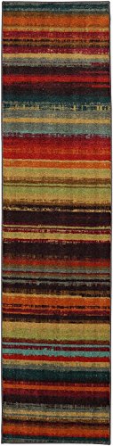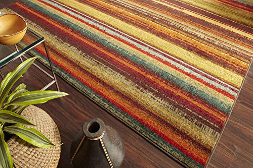 Printed on the same machines that manufacture one of the world’s leading brands of printed carpet, this rug is extremely durable and vibrant. This technology allows the use of multiple colors to create a rug that is wonderfully designed and applicable to any room in your home. The traditional stripe gets and update in this artist rendition that features bold color and blurred strokes. Printed on the same machines that manufacture one of the world’s leading brands of printed carpet, this rug is extremely durable and vibrant. This technology allows the use of multiple colors to create a rug that is wonderfully designed and applicable to any room in your home. Crafted completely in the USA, this rug is made from durable stain resistant nylon.Feature