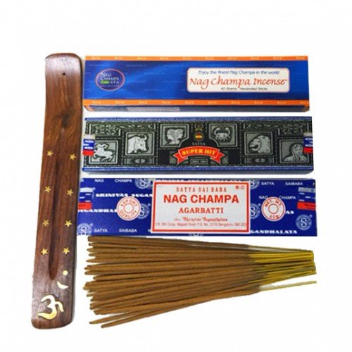 NAG CHAMPA TRIO - 3 boxes (40 Grams each) with Free Holder -Satya Nag Champa, Satya Super Hit & Nag Champa Gold